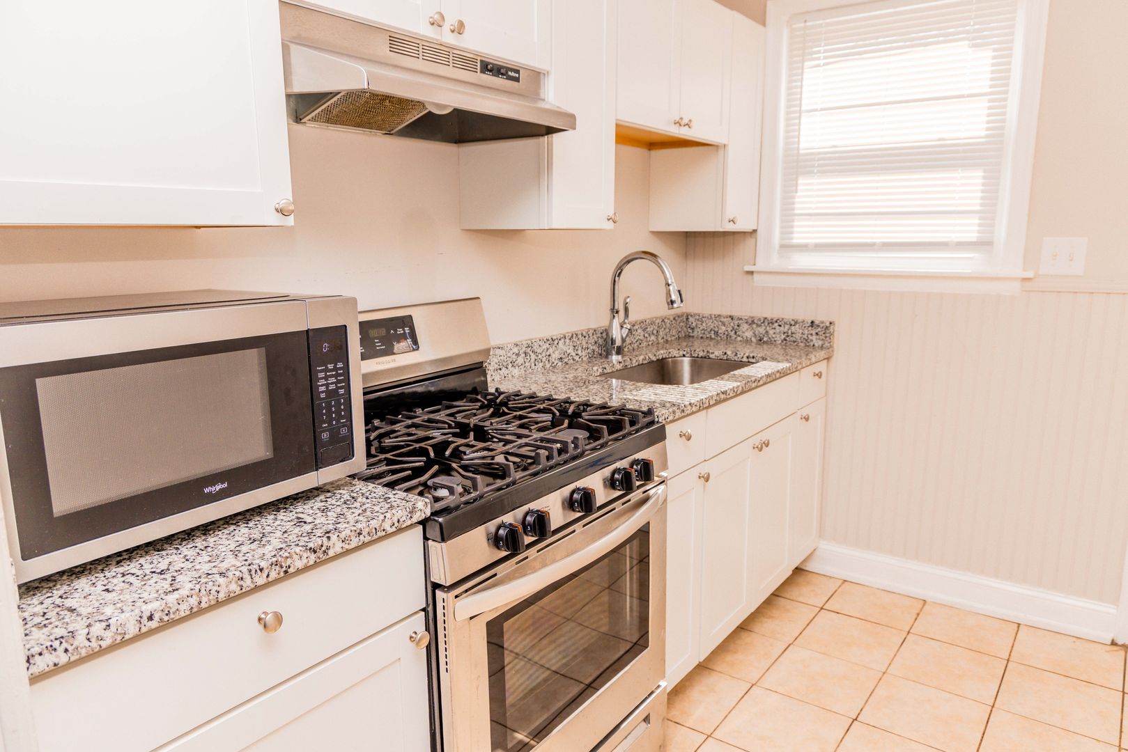 2 bedroom apartment in Randolph, fresh paint granite counters, cabinets, stainless appliances, microwave, hardwood floors, ceiling fans large bowl stainless kitchen sink.